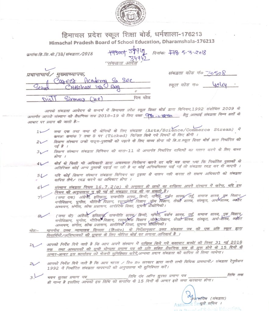 It’s my privilege to welcome all of you to our 10 + 2 English Medium Career Academy Senior Secondary School, situated at Chauhan ka bagh, Nahan and affiliated to Himachal Pradesh Board of School Education, Dharamshala since March 2012.