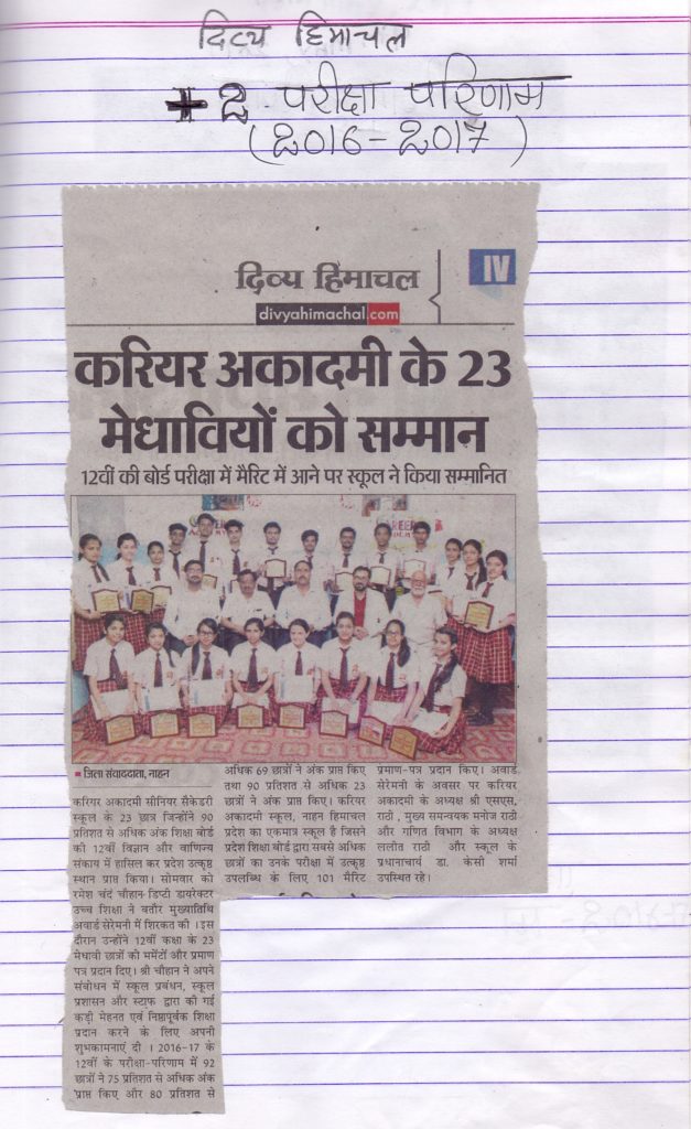 Academic Excellence Award Ceremony for class 12th (2016-17)