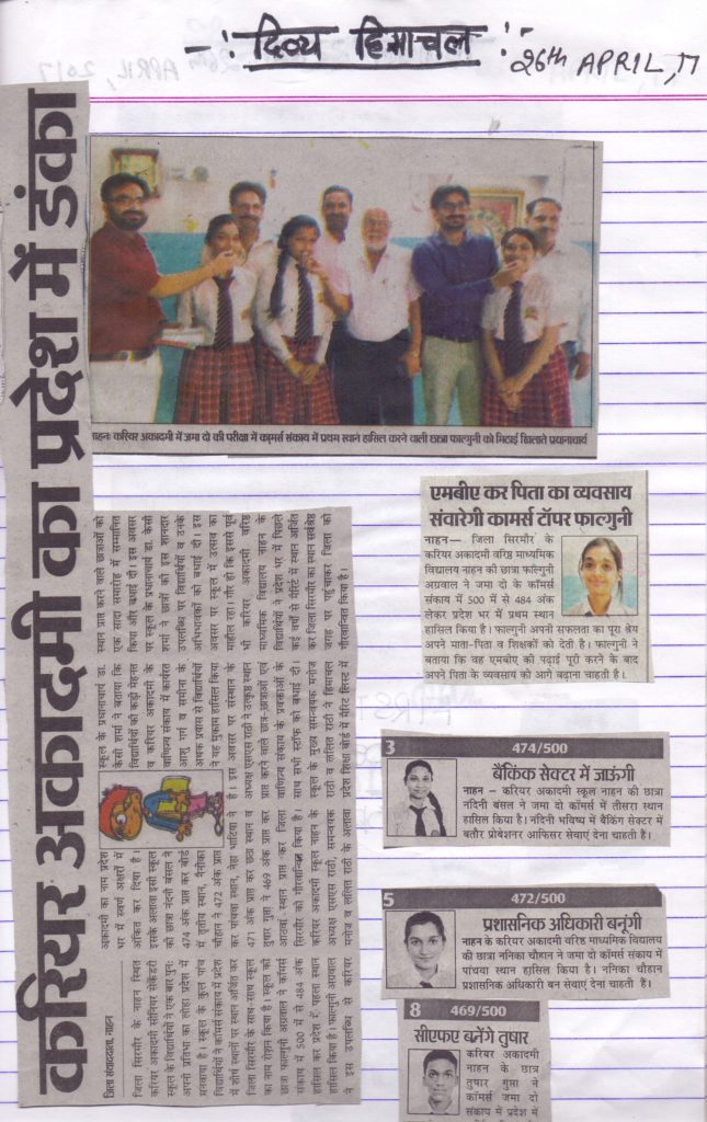 Meritorious Students of Class 12th (2016-17)